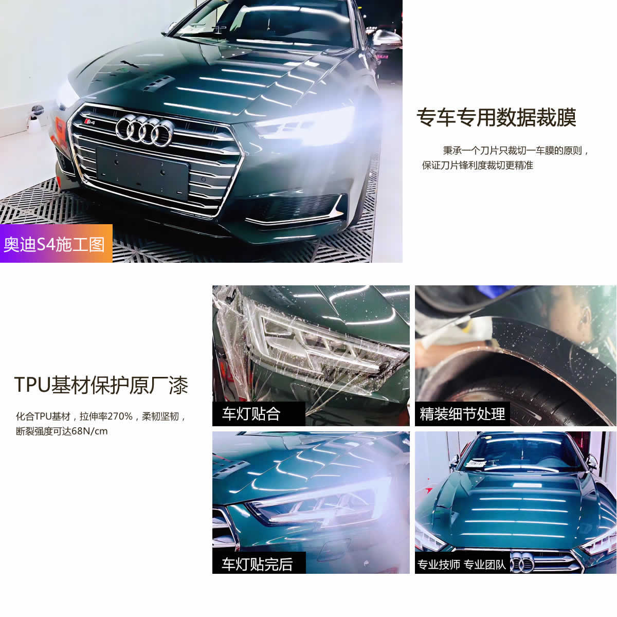 奥迪S4贴蓝色魔力车衣漆面施工细节