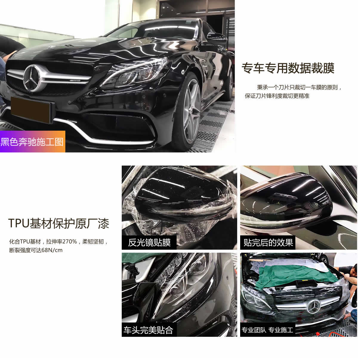 黑色奔驰贴蓝色魔力车衣漆面施工细节