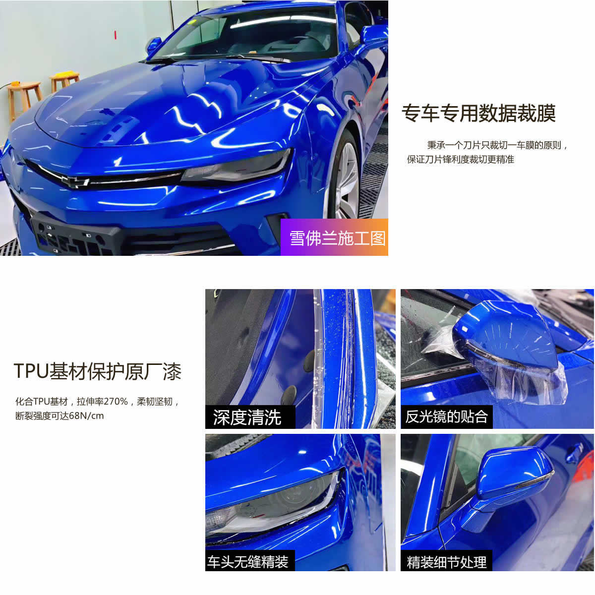 雪佛兰贴蓝色魔力车衣漆面施工细节